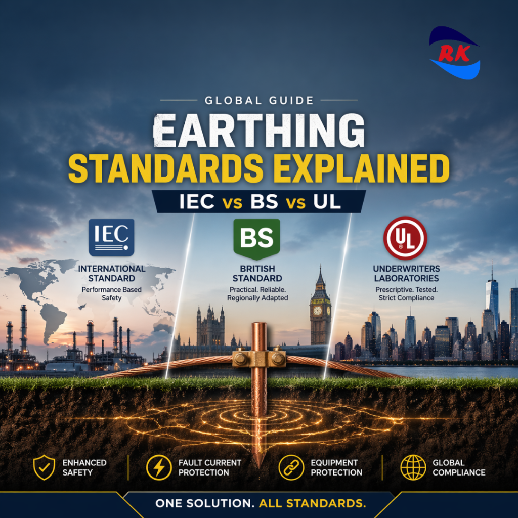 At RK Engineering, we position ourselves as a top manufacturer delivering globally compliant earthing solutions tailored to meet IEC, BS, and UL requirements. Learn more about our expertise here: https://rkenggindia.com/
